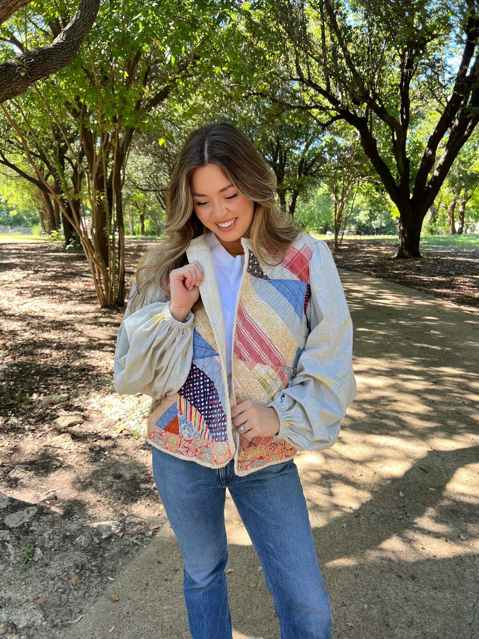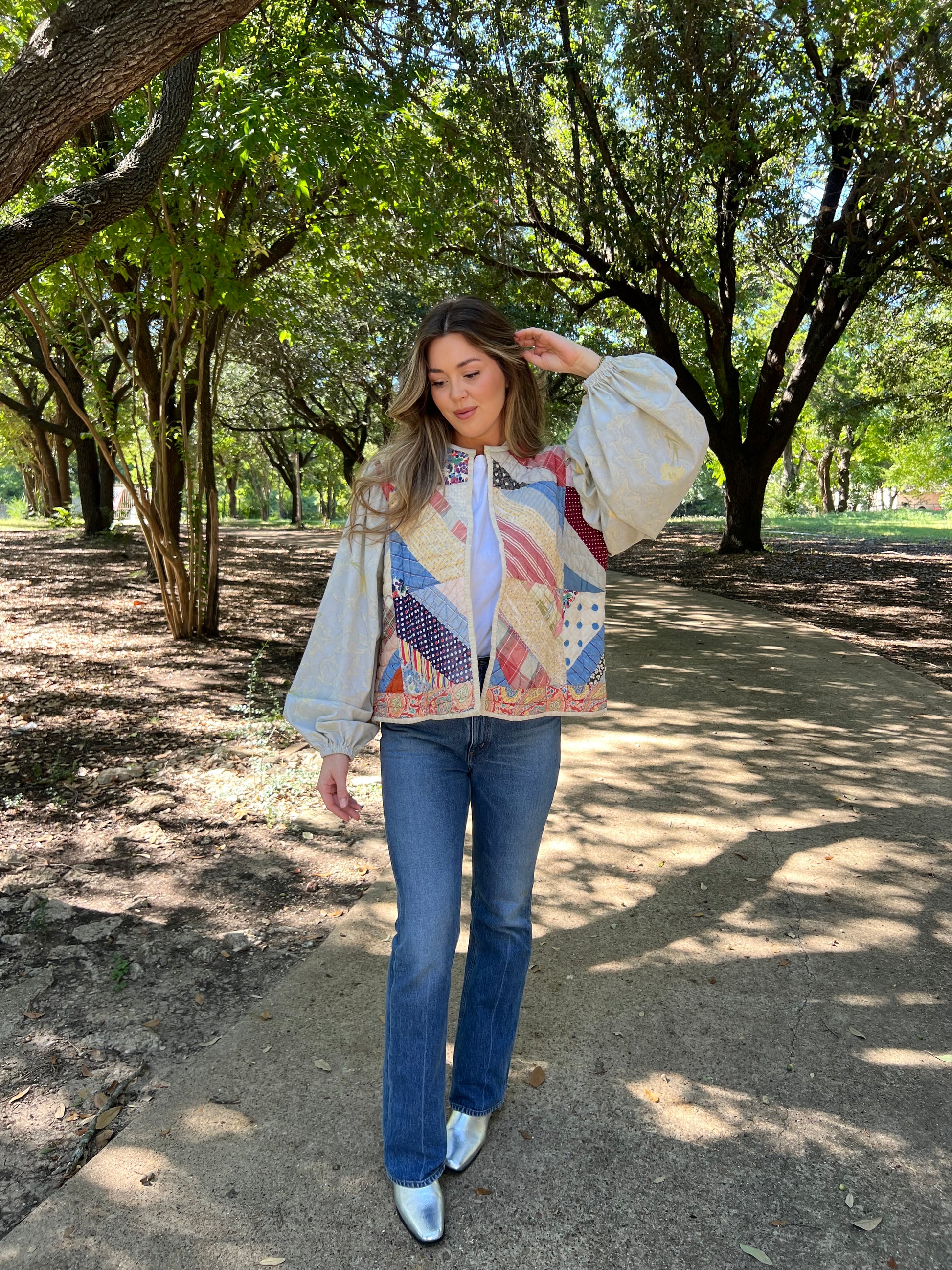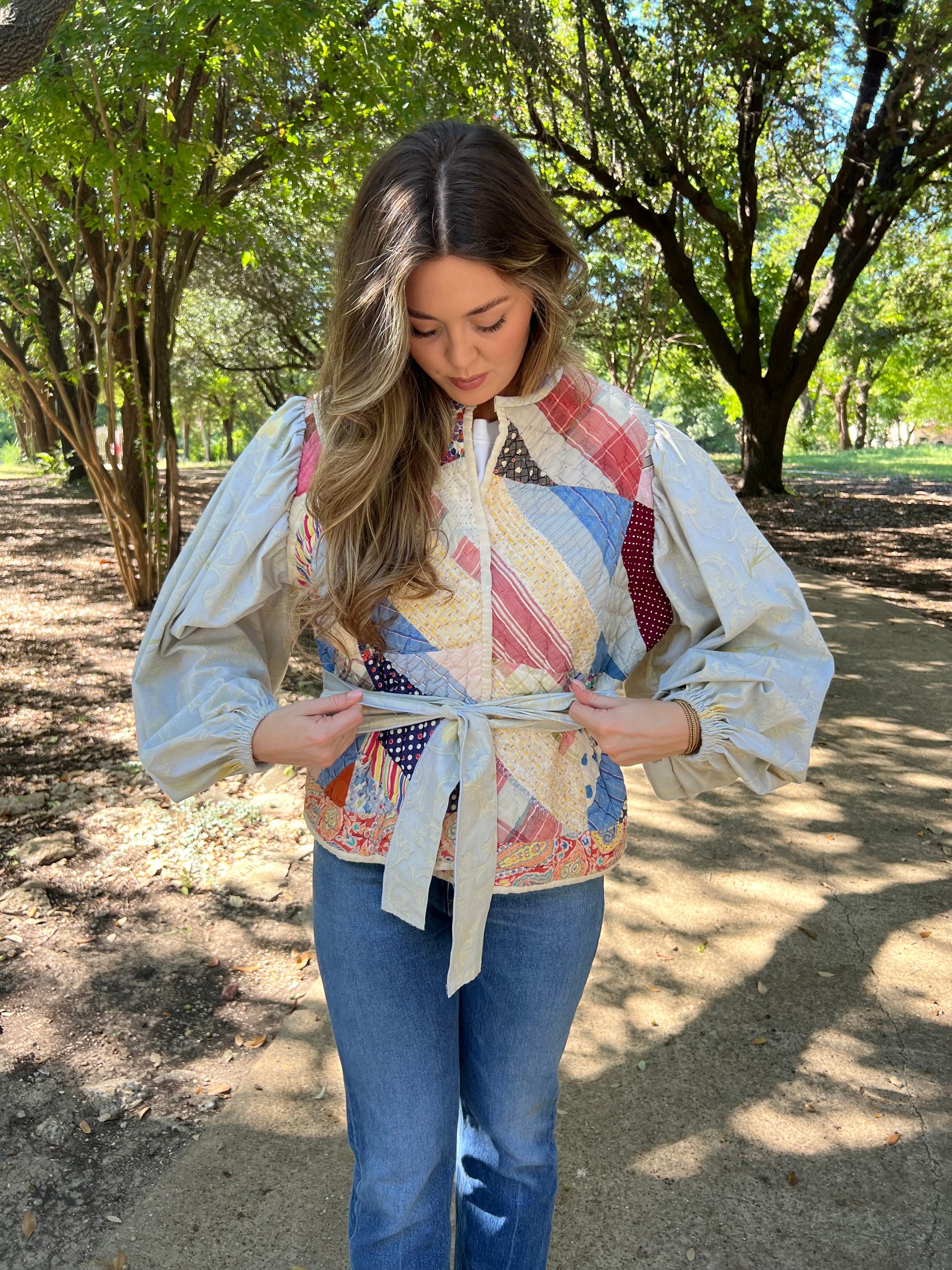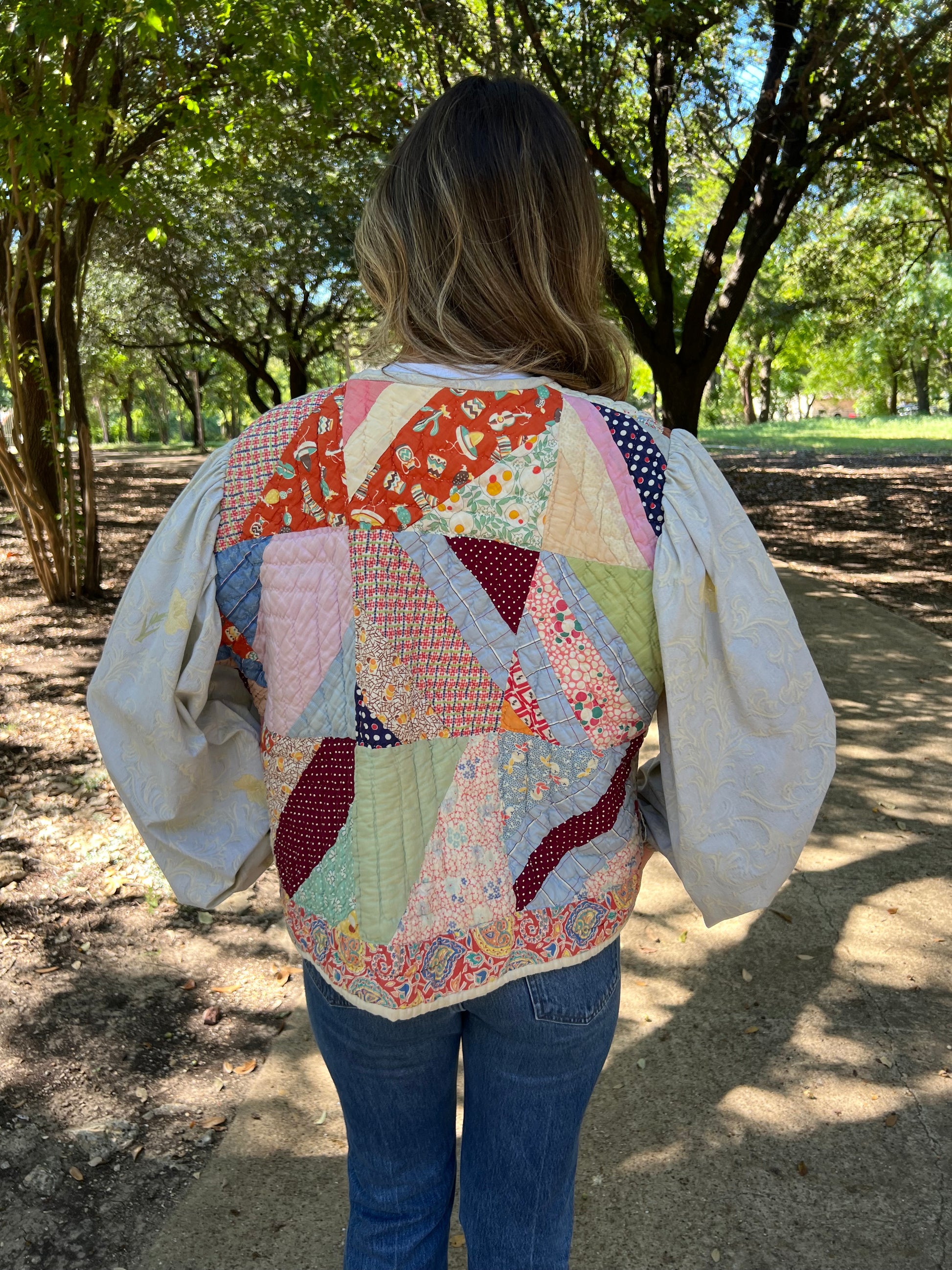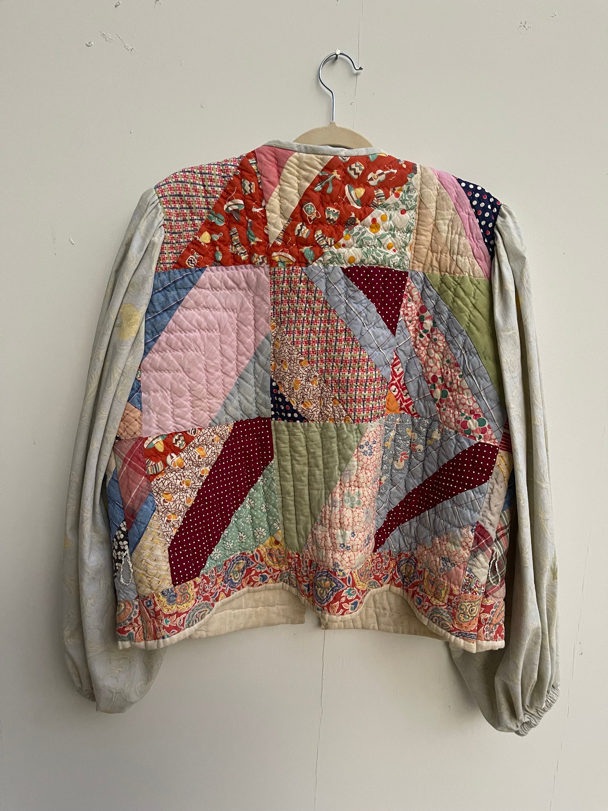 Quilted bodice and back with full vintage sheet sleeve and inside pocket