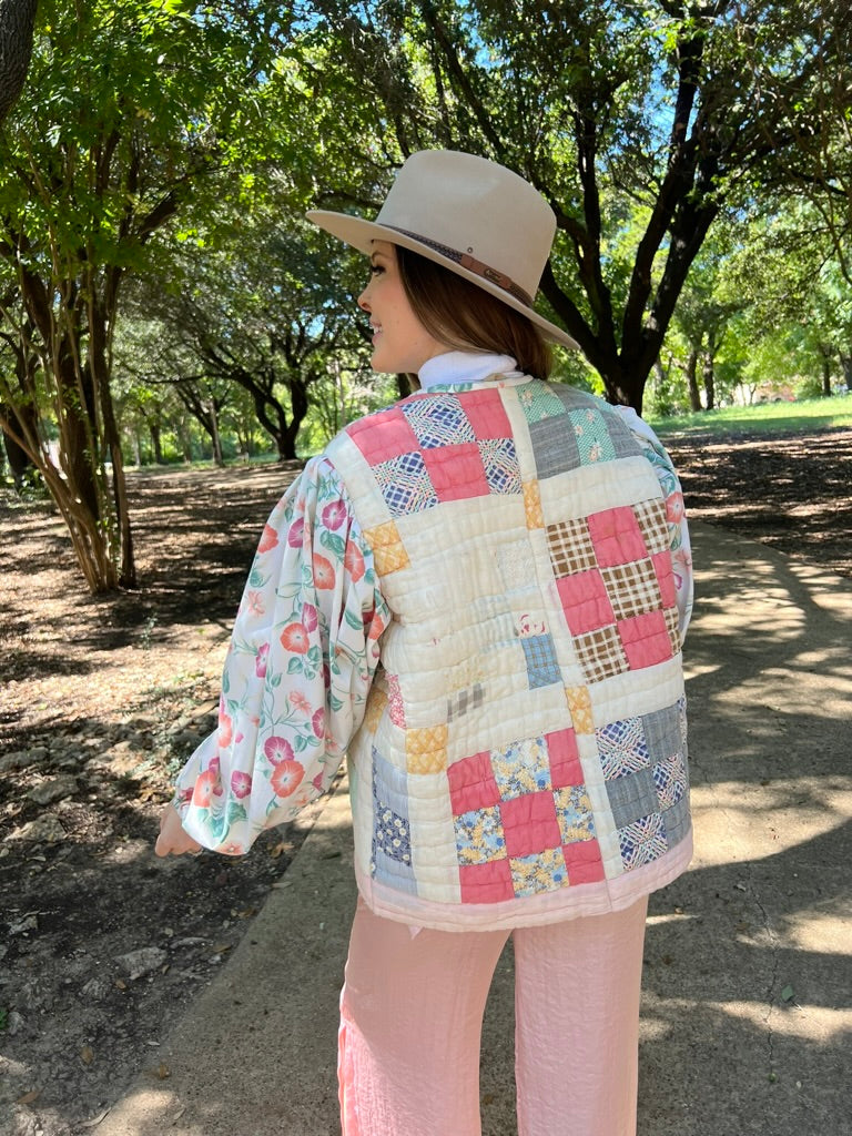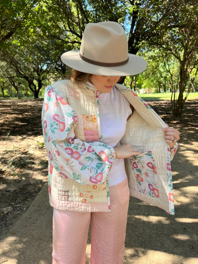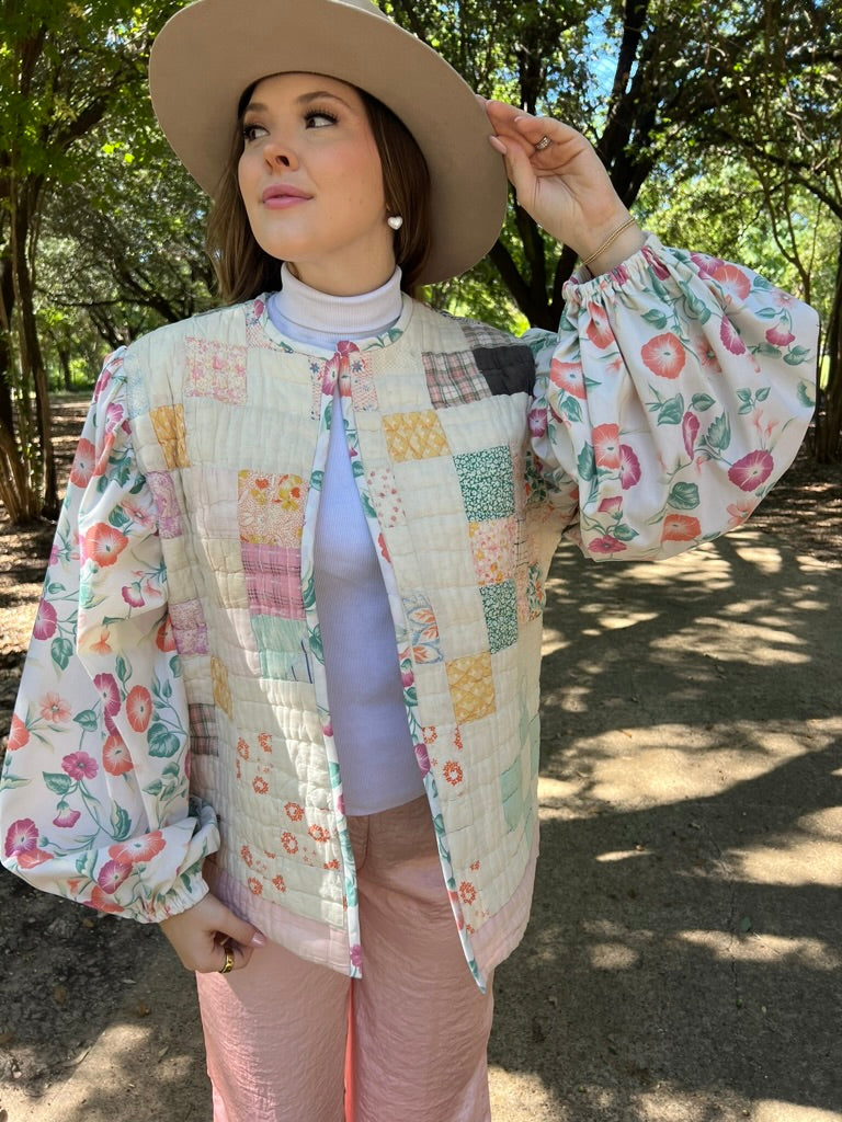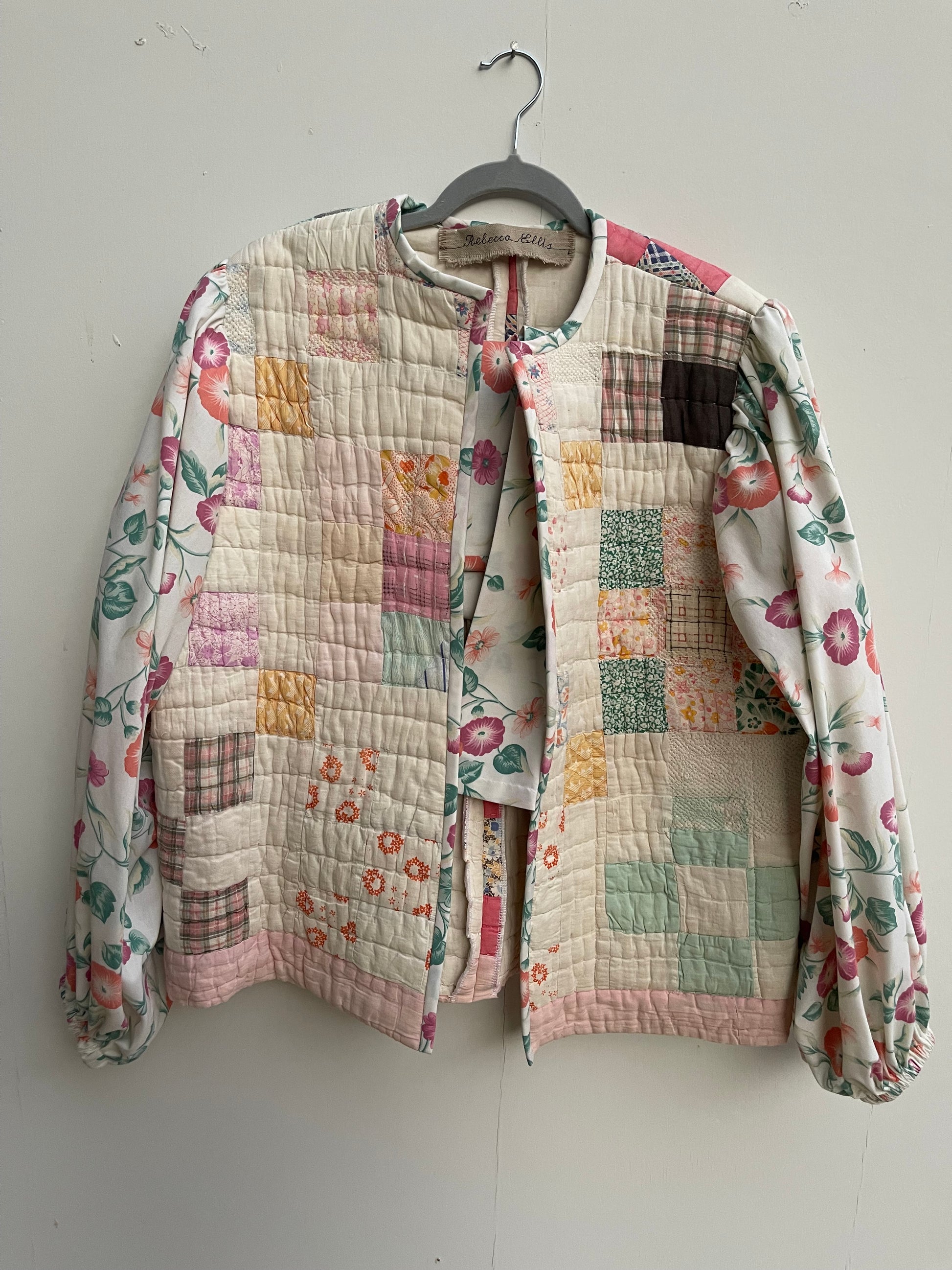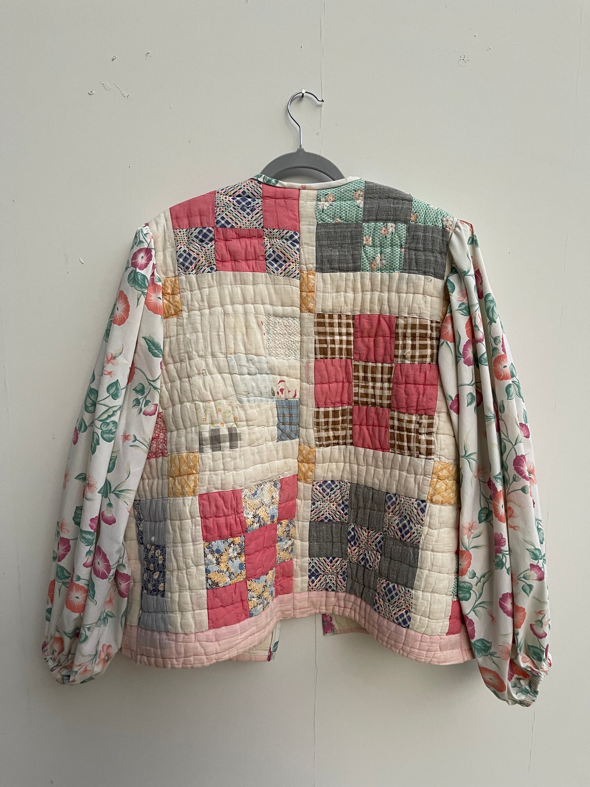 Quilted bodice and back with full vintage sheet sleeve and inside pocket