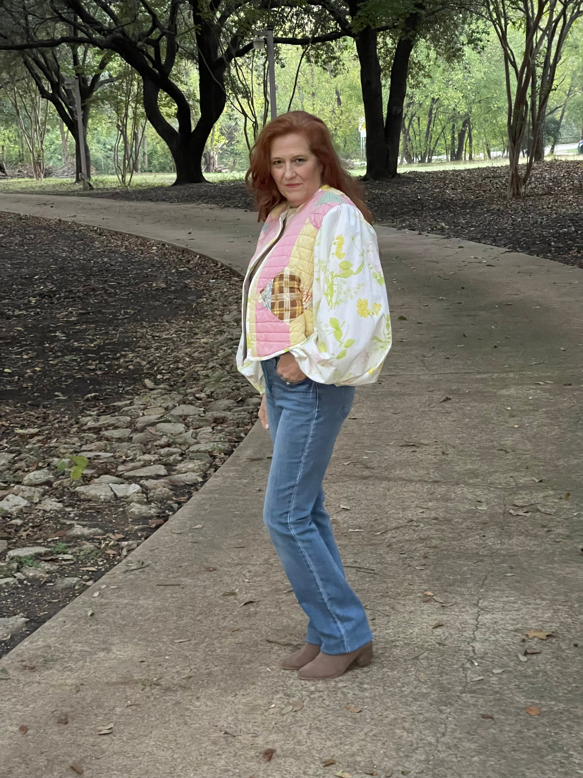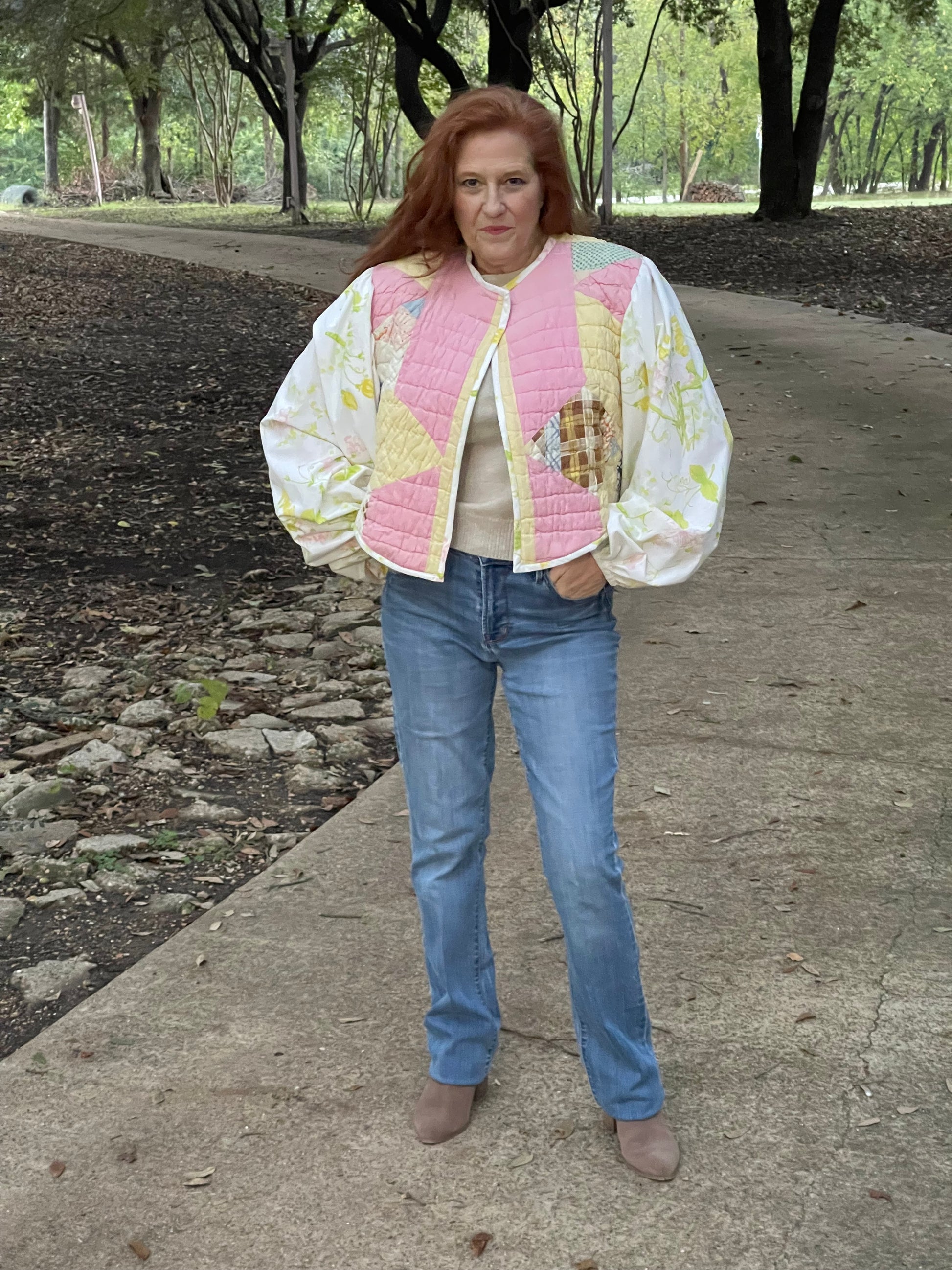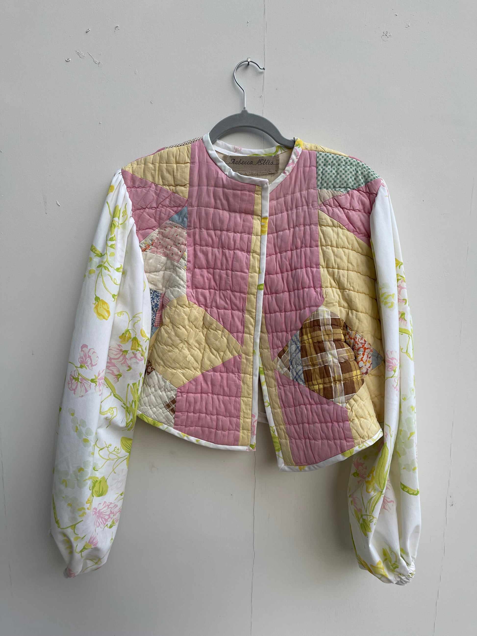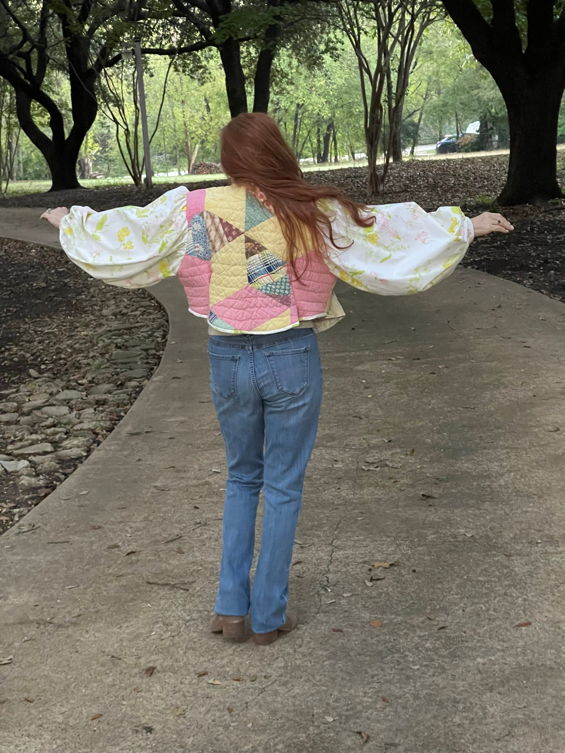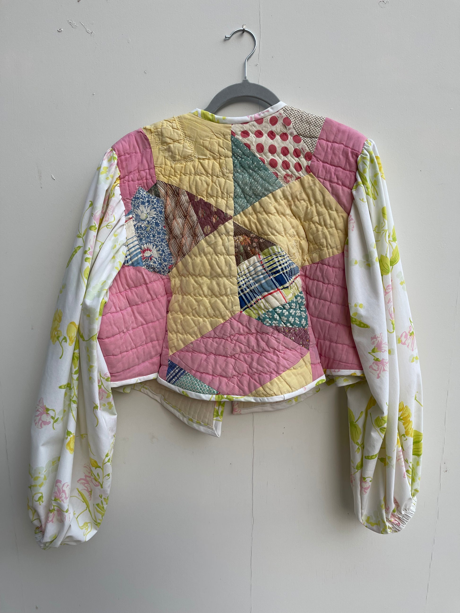 Quilted bodice and back with full vintage sheet sleeve and inside pocket